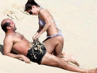 Z zaročencem Billyjem sta se razposajeno igrala na plaži ...