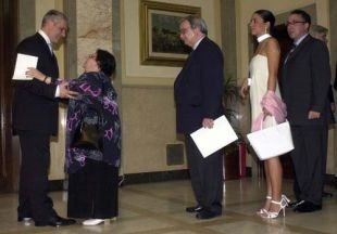 Srdjan Šaper (prvi z desne) na sprejemu pri staro-novemu srbskemu predsedniku Borisu Tadiću.