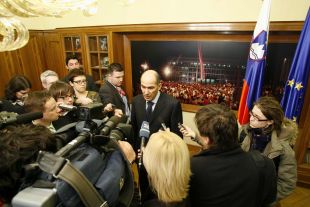 Premier Janša pravi, da dokumentov, objavljenih v Politiki, še ni videl. Menda čaka, da jih bo objavil ljubljanski Dnevnik ... mogoče bo zdaj pot obratna, je včeraj dejal novinarjem. (Foto: Sta)
