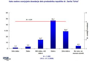 Tri četrtine vprašanih dosedanje delo predsednika države Danilo Türka ocenuje kot dobro oziroma zelo dobro.