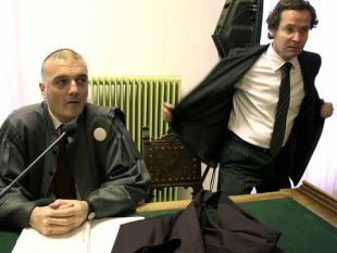Državni tožilec Marko Godec (levo) in odvetnik otrok pokojne Majde Marije Kolenik David Sluga sta sodnici Alenki Grosek predlagala, da se izvedenca kljub Rudanovi odsotnosti zasliši.