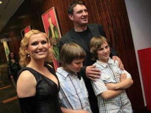 Družina je Nuši stala ob strani cel večer, mož Frenk je pozorno skrbel za ozvočenje, sinova Gašper in Matevž pa sta pod odrom navdušeno gledala svojo mamico.