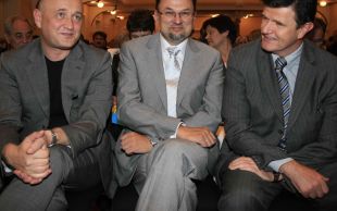 Direkt iz prve vrste (z leve): Matjaž Gantar, prvi človek KD Group in predsednik gospodarskega odbora LDS, evropski poslanec Jelko Kacin in predsednik Državnega sveta Blaž Kavčič.