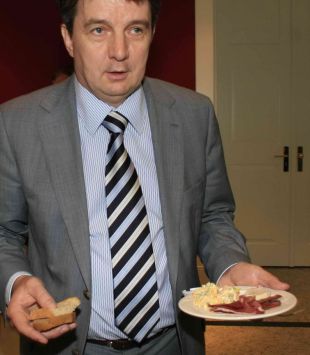Kulinarično ponudbo sobotnega kongresa so pridno izkoriščali vodja poslanske skupine Jožef Školč (med zasedanjem kongresa je poslanec sedel šele v drugi vrsti) ...