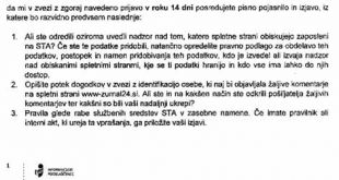 Faksimile dopisa in zahtev Informacijske pooblaščenke direktorici STA Alenki Paulin. Za povečanje klikni na sliko!