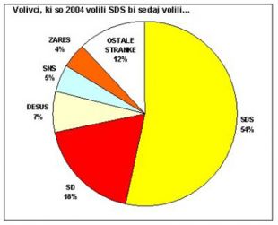 Med volivci SDS iz leta 2004 je dobra polovica takih, ki bi zopet volili za to stranko, skoraj petina pa bi se odločila za SD.