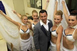 Marko Vozelj, ljubljenec gledalcev, s svojimi plesalkami.