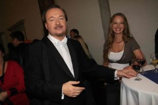 Patrik Greblo, ki je poleg Lojzeta Krajnčana vodil orkester RTV Slovenija, v ozadju Simona Černetič - Aynee.