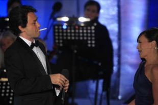 Jure Ivanušič je s svojo imitacijo Deana Martina vsaj nekoliko razbil monotonost prireditve, poleg njega je Tajda Lekše.