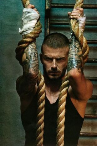... nogometaša, ki razkazuje svojo mišično moč ...