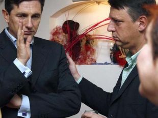 Borut Pahor (desno Tone Rop) naj bi na včerajšnjem kolegiju povedal, da kandidatura Draška Veselinoviča koalicijsko ni usklajena.